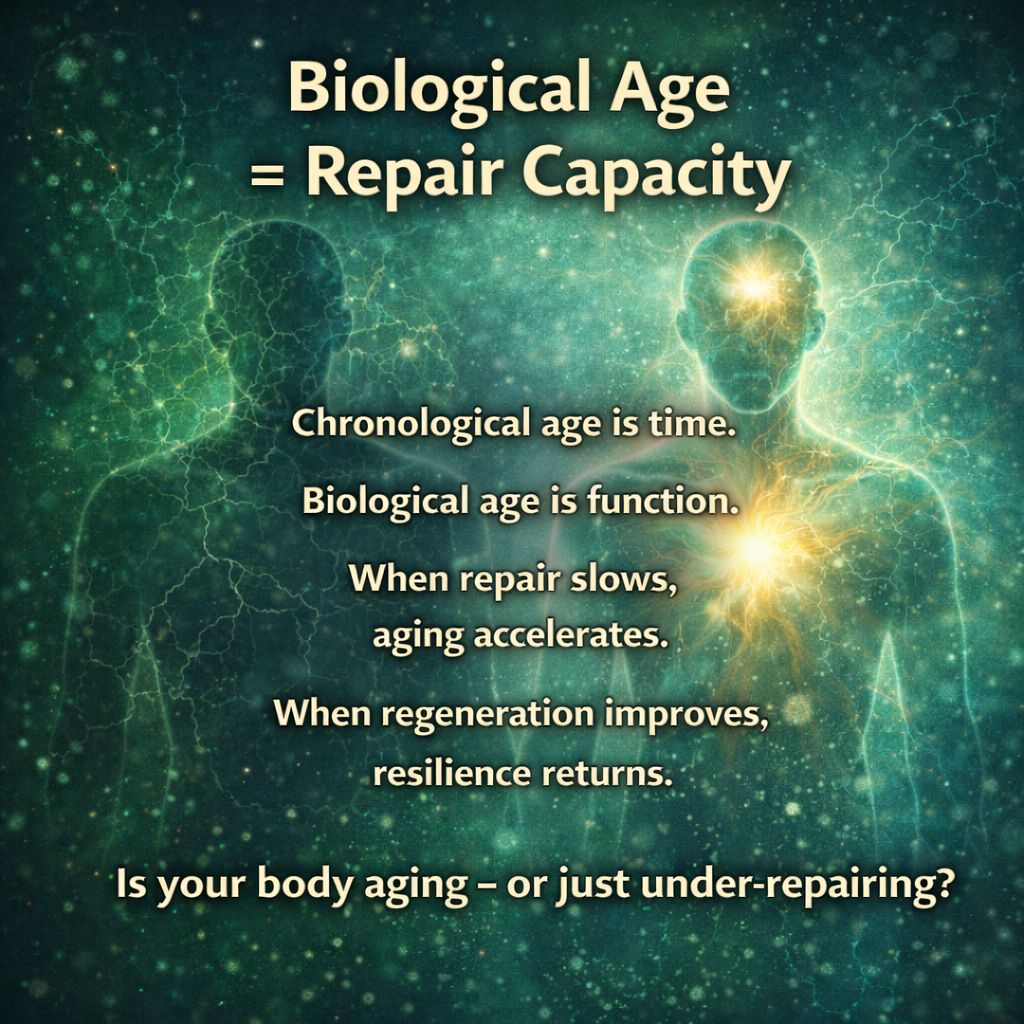 It’s not that the body stops repairing itself — it’s that regenerative signaling becomes less efficient over time.