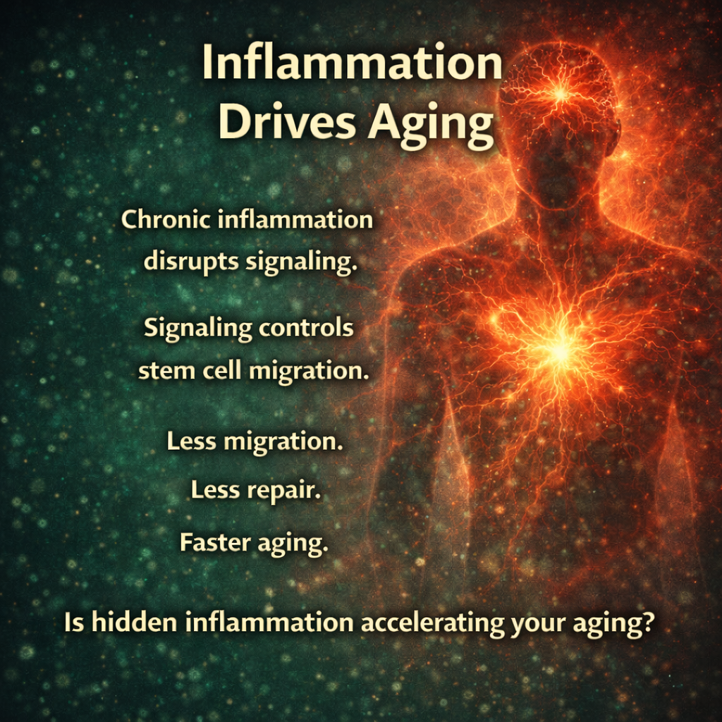 Researchers have described this as a disruption in cellular communication — where repair signals compete with inflammatory signals.